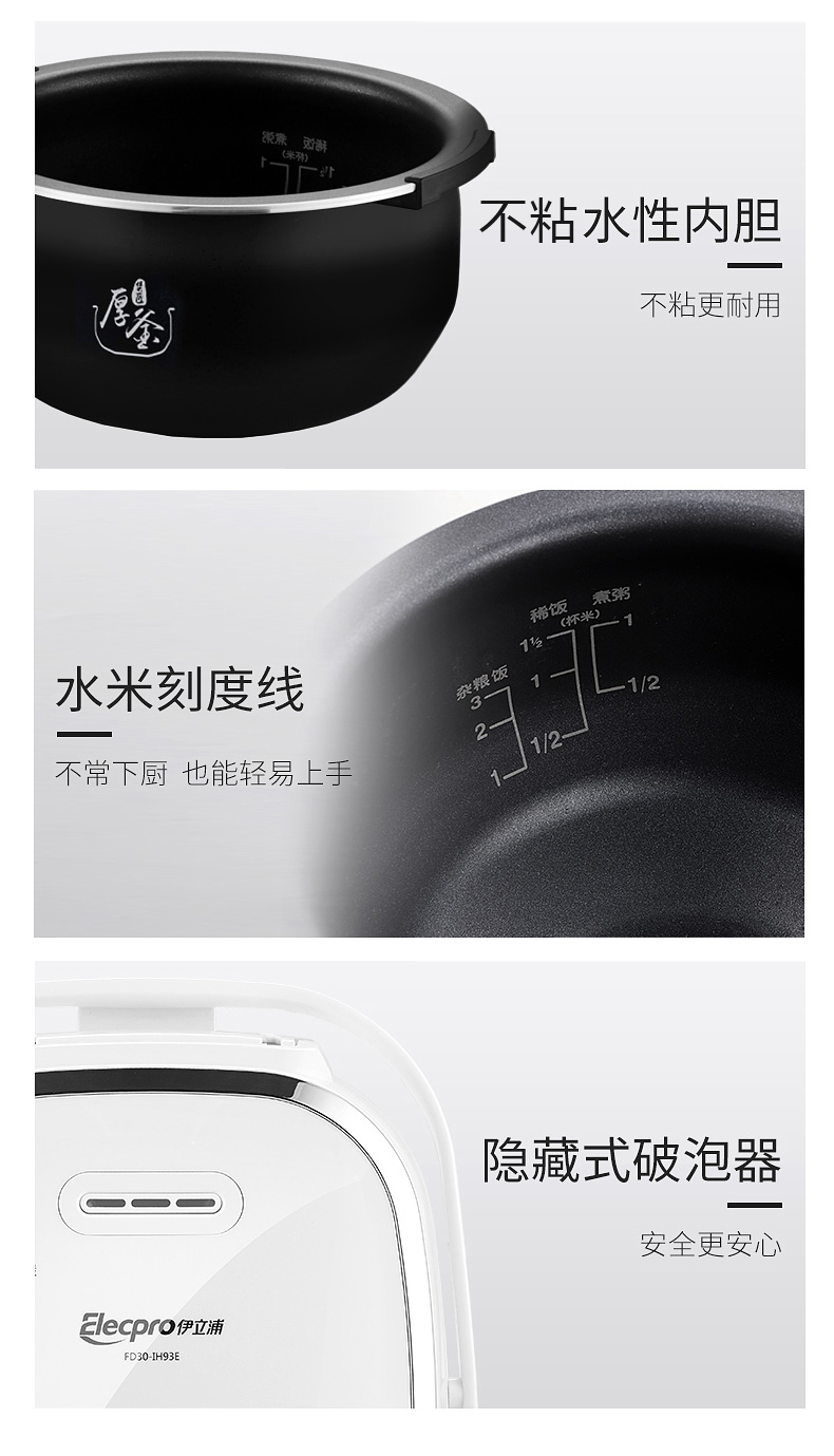 蒸架、内盖、饭勺、量杯、电源线、说明书、保修卡